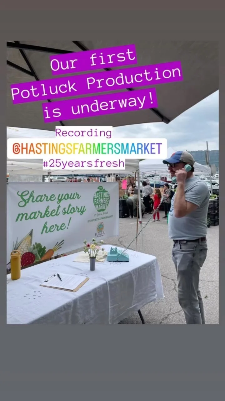 If you have a story or a memory about the Hastings Farmers Market and aren’t able to join us in person, you can record it on your phone using Voice Memos on iPhone or any audio recording app on Android, and email it to info@potluckproduction.com. Include your name in your recording, and tell us your favorite market memory or what the market means to you.